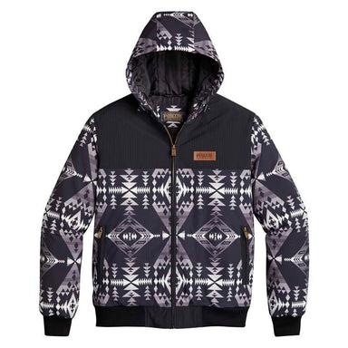 The Stadium Trucker Jacket features a Pendleton pattern on a durable water-resistant rip stop shell of plant-based Sorona® fabric