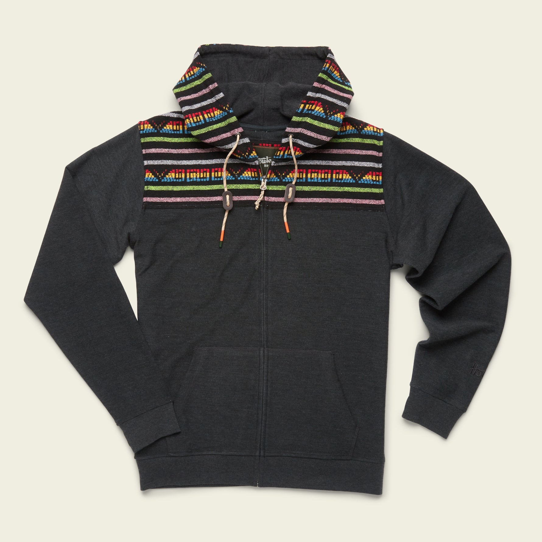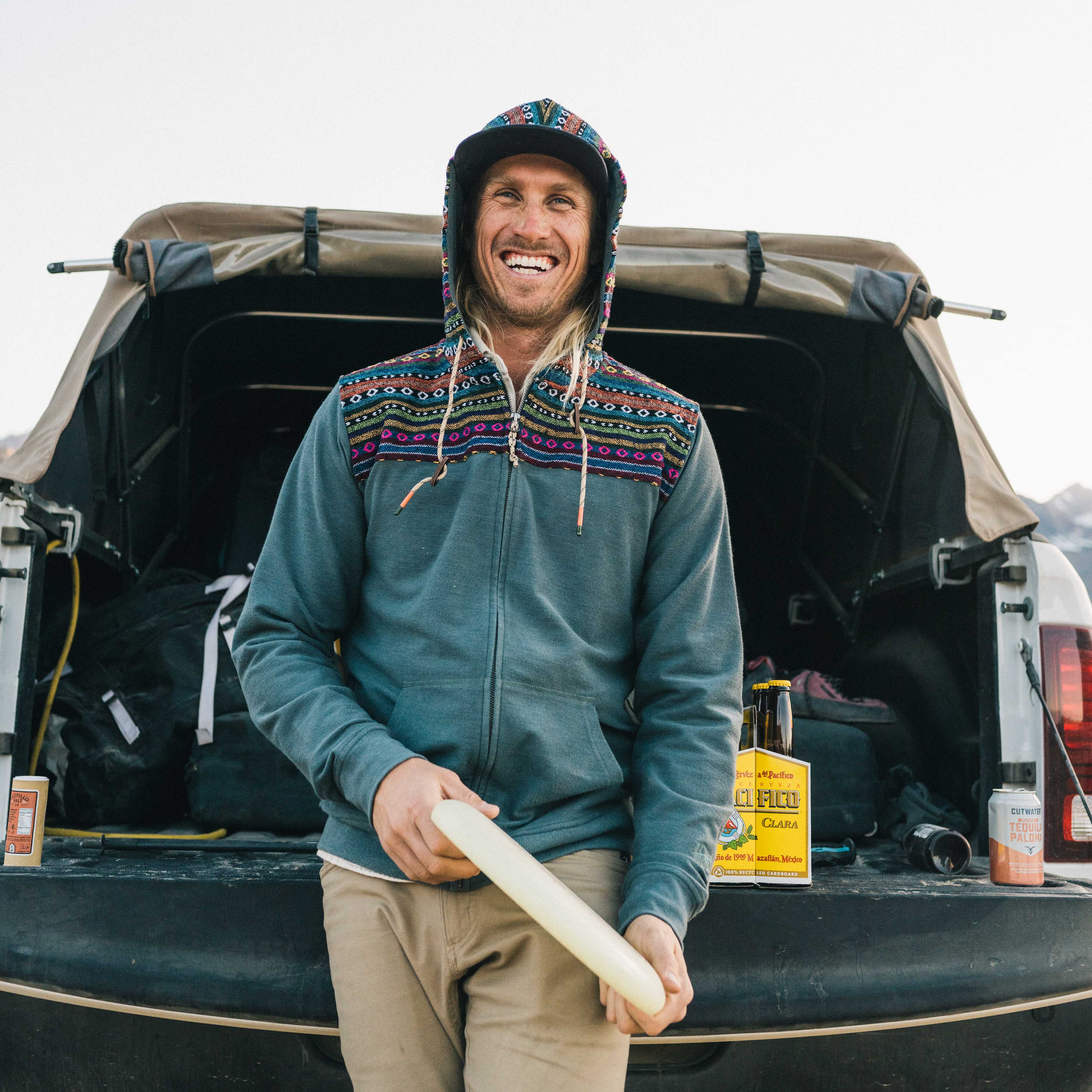 The Shaman Hoodie is a unique cotton blend hoodie with a woven jacquard yoke inspired by the baja hoodies you may have seen at surf breaks and music festival parking lots back in the day. The fan-favorite Shaman features a full front zipper, front hand warmer pockets, rear stash pocket, and woven zipper pull cord with leather fobs. Find the spirit world.